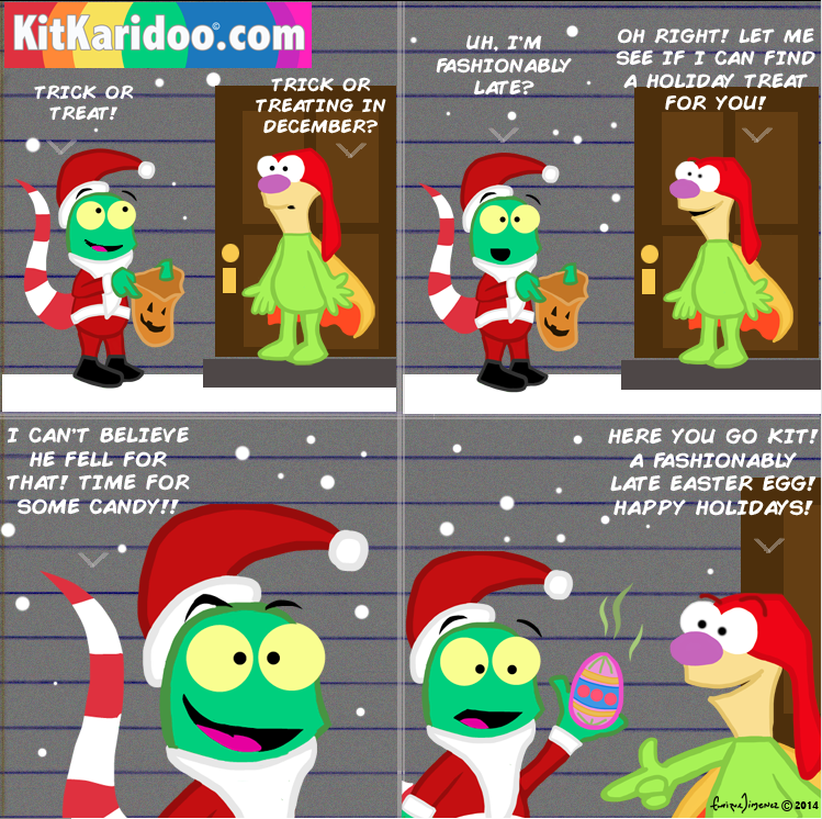 #4 Happy Holidays December 23, 2014February 9, 2015 kitkaridoo Uncategorized Christmas, Comic, comic strip, Diggory Dog, Doodle, Easter, Halloween, Holiday, humor, illustration, Kit Karidoo © 2014 Copyright. All rights reservedkitkaridoo@gmail.com@kitkaridoo on Twitter and Instagram!! Share this: Click to share on Subscribe (Opens in new window) Subscribe Click to print (Opens in new window) Print Click to share on Facebook (Opens in new window) Facebook Click to share on Reddit (Opens in new window) Reddit Click to share on Pinterest (Opens in new window) Pinterest Click to email a link to a friend (Opens in new window) Email Click to share on Tumblr (Opens in new window) Tumblr Click to share on X (Opens in new window) X Like Loading...